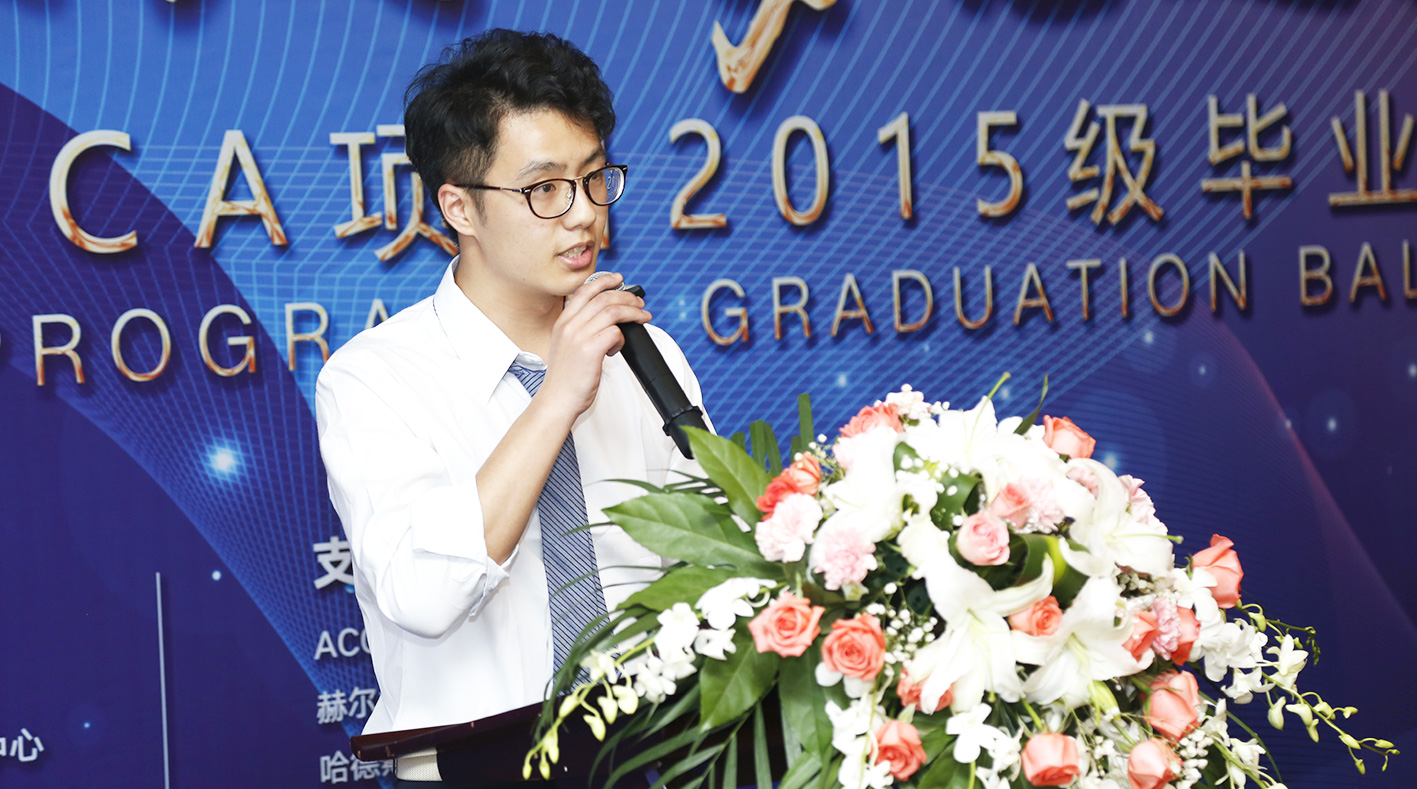 2015级也涌现出一些成绩特别出色的同学,有雅思考出7.5分的,有ACCA课程通过11门的。优秀学生代表胡哲银和王晶分别发言,他们的发言中既有对同学之情的不舍,又有对老师的感谢,还有对未来的期许和计划的畅想,真挚的发言引来阵阵掌声。